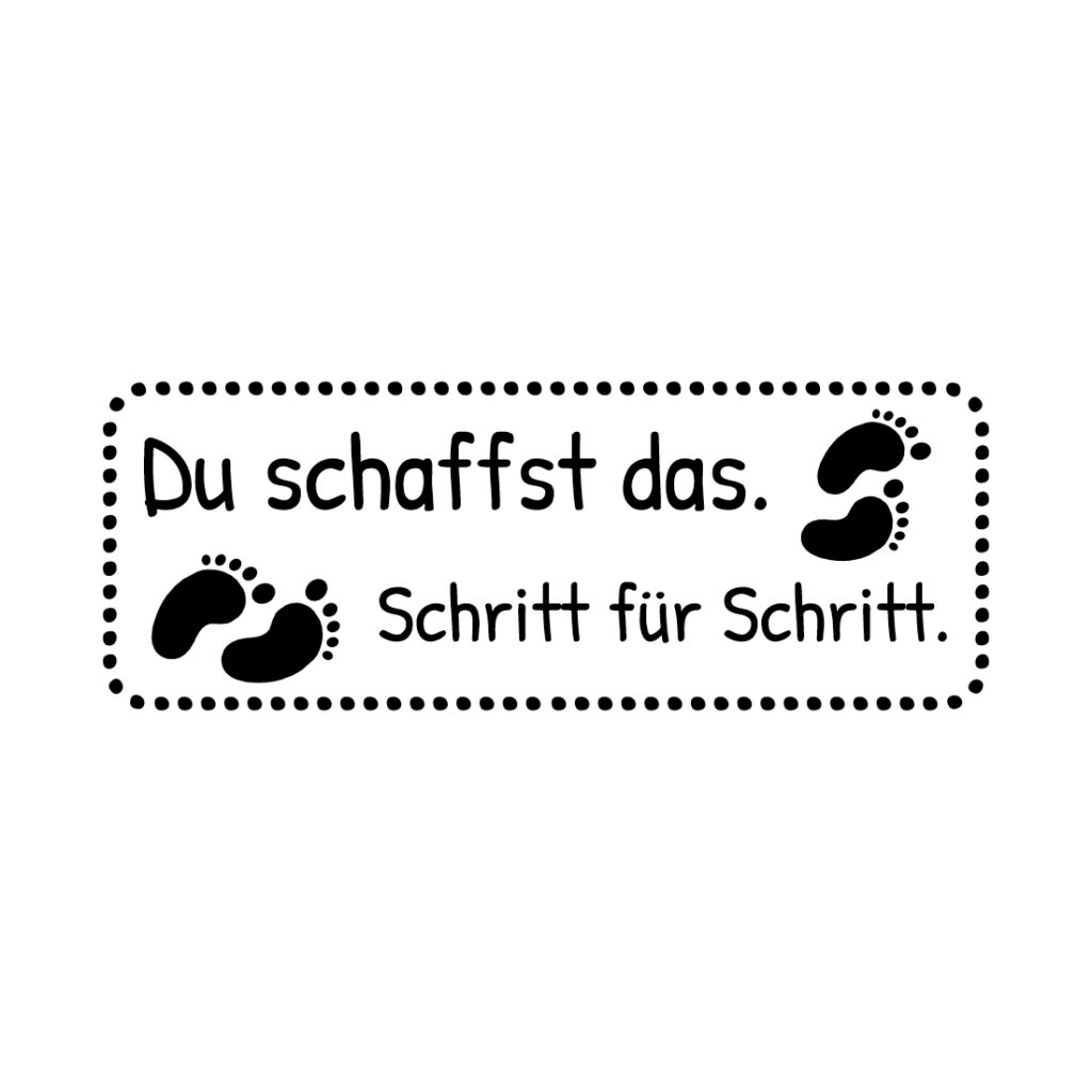 „Du schaffst das – Schritt für Schritt“ ist ein motivierender Trodat-Stempel für den schulischen Alltag. Er erinnert daran, dass Lernen ein Prozess ist – in kleinen Etappen, mit Vertrauen und Entwicklung. Ideal geeignet für Lehrer:innen, Lernbegleiter:innen oder therapeutische Arbeit.